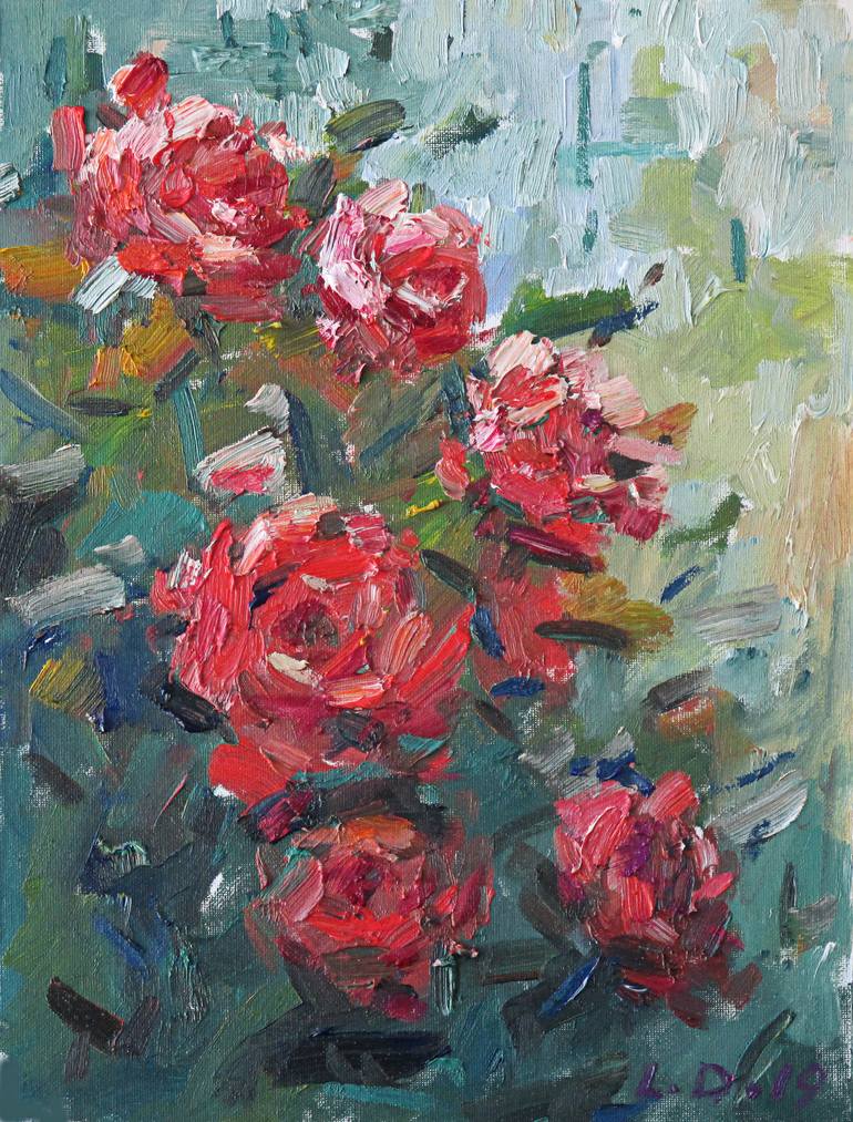 Roses original oli painting on canvas. Artwork painted in impresionism stile.