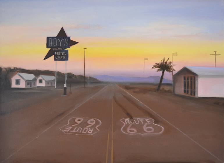 inspired by the legendary Route 66 oil on a top quality hand stretched and hand primed linen canvas sides - raw linen
