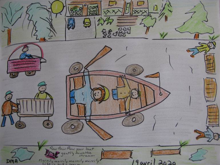 In this exceptional year, 2020, I am drawing a picture with marker and crayons for my grandchildren every day. This whimsical work depicts a children's song.