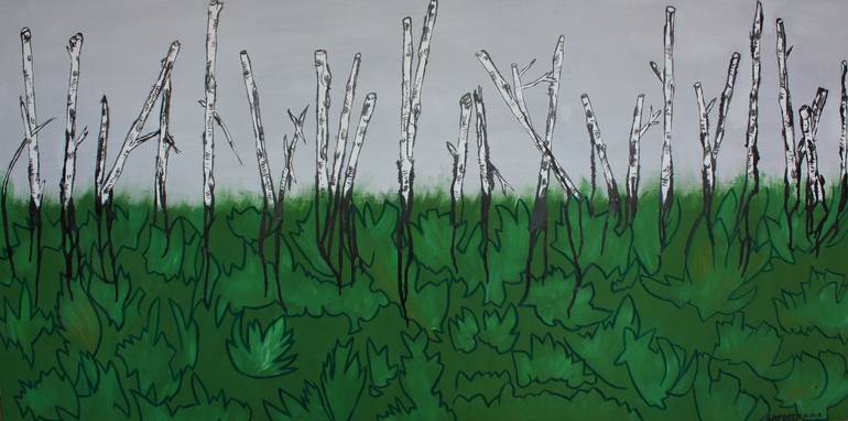 Row of silver birch was painted from a scene I came across on the train into London. A sad looking row of trees on the wayside had been lopped off at the middle but were footed by a carpet of luscious grass. It was quite odd because none of the trees next to them had been treated in such a fashion. ...