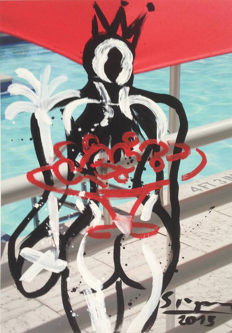 Since the late 90s Stefan Szczesny has experimented with painting on photography. "Royal Palm" is an example of this technique. The photo in the background here is printed on canvas. On it, Szczesny has painted a nude and a still life.