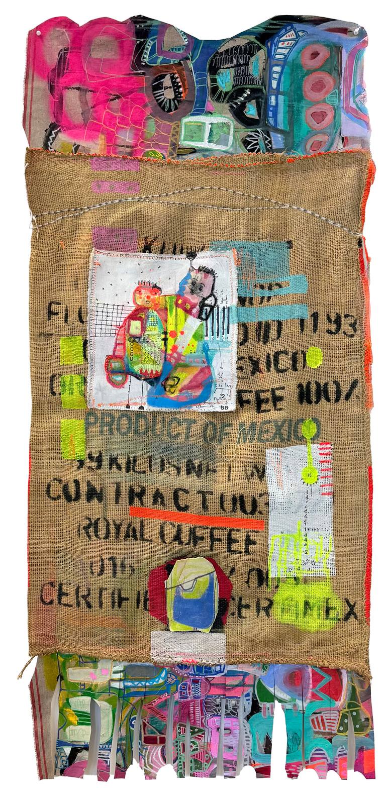 Royal by Isabelle Gougenheim is a celebration of movement, curiosity, and connection. Layers of collage, acrylic, pastel, spray paint, and pencil create a world alive with energy. Inspired by her hometown of Saint-Dié-des-Vosges in France, the birthplace of cartography, the work maps experiences col...