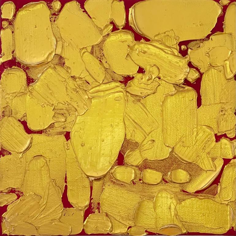 Abstract portrayal of transformation and revelation: heavily textured metallic gold gilds over deep matte under-painting, revealing a metaphorical journey of hidden brilliance emerging from within muted beginnings. Goldfinger is part of a larger series called Optimistic. They are bold and textured ...