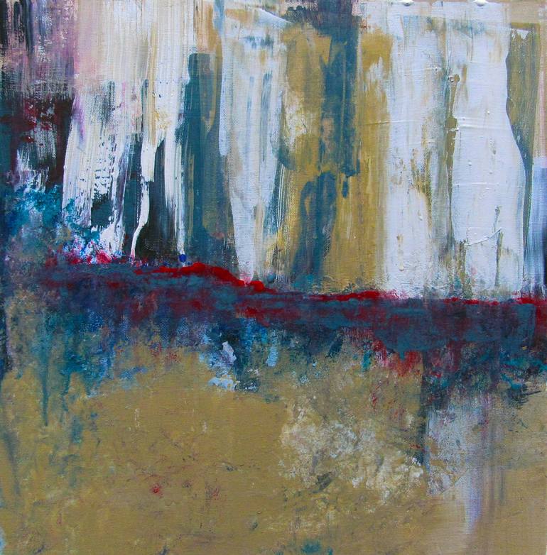 Acrylic on canvas 18”x 18”. Subdue colors mingle with each other throughout the canvas. Sides are painted black and painting is ready to hang.