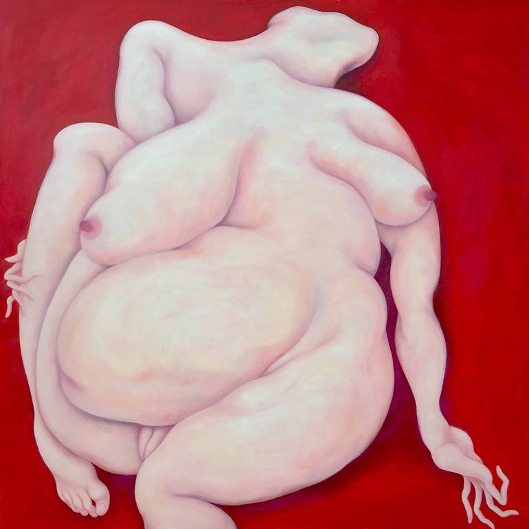 The nude in the red background is cold and silent. Many breasts look very soft and plump, symbolizing the source of sensuality and life.