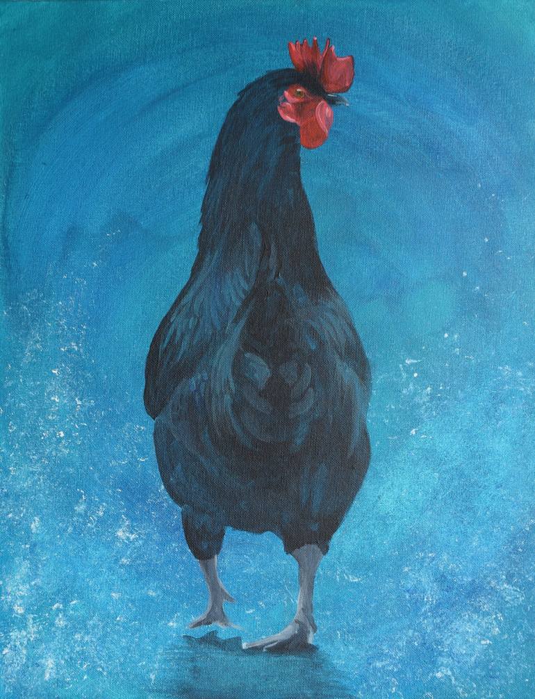I came across this cockrell on a farm in Northern Ireland and I've tried to recreate his strut and knowing look as paraded around the farm yard. The photographs don't do justice to the depth of colour in the artwork with subtle shades of turquoise in his plumage defining the light and shadow. Paint...