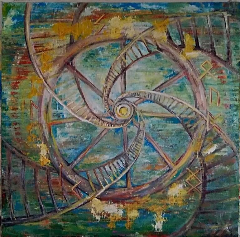 Painting, oil, canvas. Without hanging fittings. Runes. Wheel of Fortune.