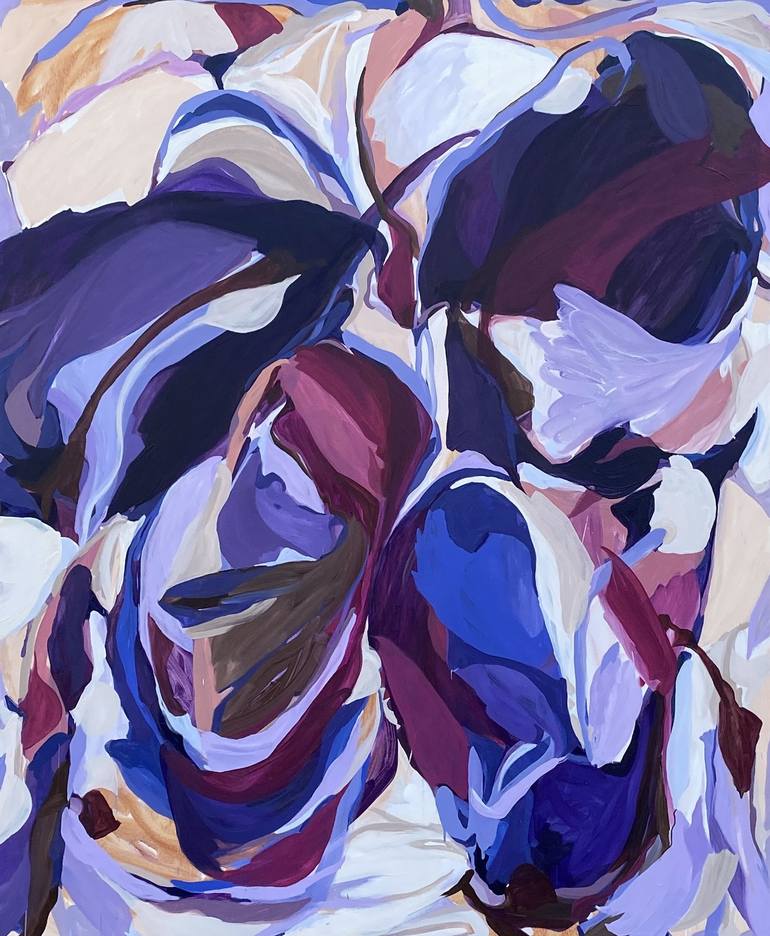 SHEBA is a large abstract oil painting, a statement piece that evokes a wind-blown bouquet of perky petals. Part of the Navigating Eden series, this contemporary artwork explores a life’s intuitive path, and the often misunderstood women who shaped the expectations before us. The artist's expressio...