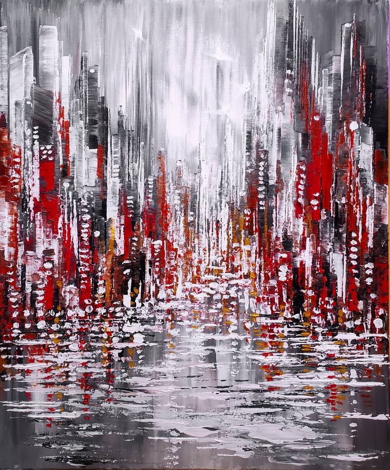 The city is a patchwork quilt of lives, each square stitched with hopes, struggles, and victories. This is an original palette knife cityscape painting. Sides of the canvas are painted grey. Protective coat of satin varnish applied. A wire for hanging is attached. The painting is signed on the ...