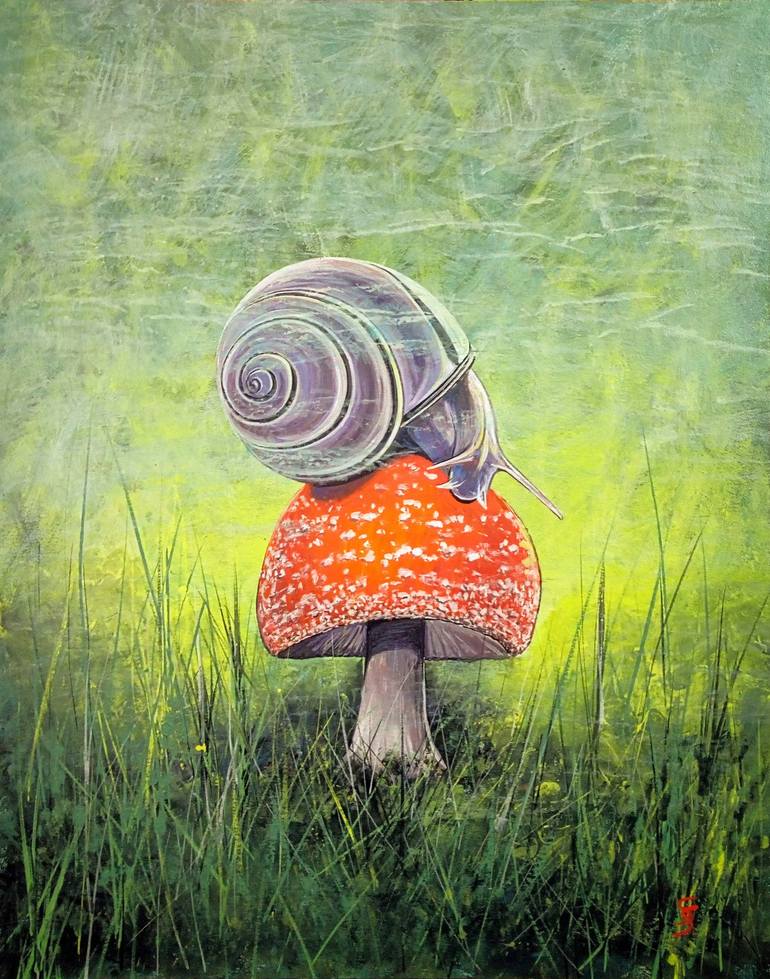 Recently I was surprised to learn that snails are now kept as pets! These creatures have developed amazing life mechanisms through evolutionary processes and many people like to watch them. Acrylic, ink, mixed media on MDF. Picture Size: 50 * 40 * 0.4 cm 19,7" * 15,7" The we...
