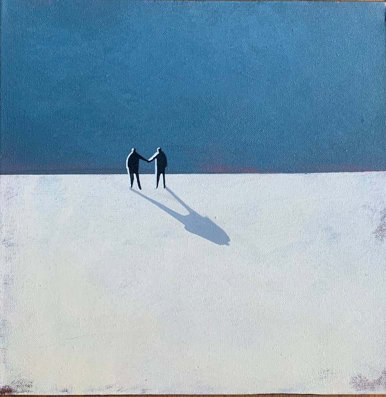 In this work, I used acrylic to explore the eternal theme of freedom. The simplicity of the figurative and symbolism intertwine, creating a metaphysical landscape where a being soars into the unknown, its wings pointing to infinite skies. The blue immensity meets the blank horizon, evoking a sense o...