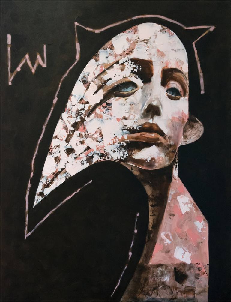 This artwork is currently exhibited in the 798 Art Zone, Beijing, China. It is quite rare when I turn to realism of any level, but when creating this painting, I was just in the mood for this specific look. I wanted to see how my usual style would work with more rendered human features.