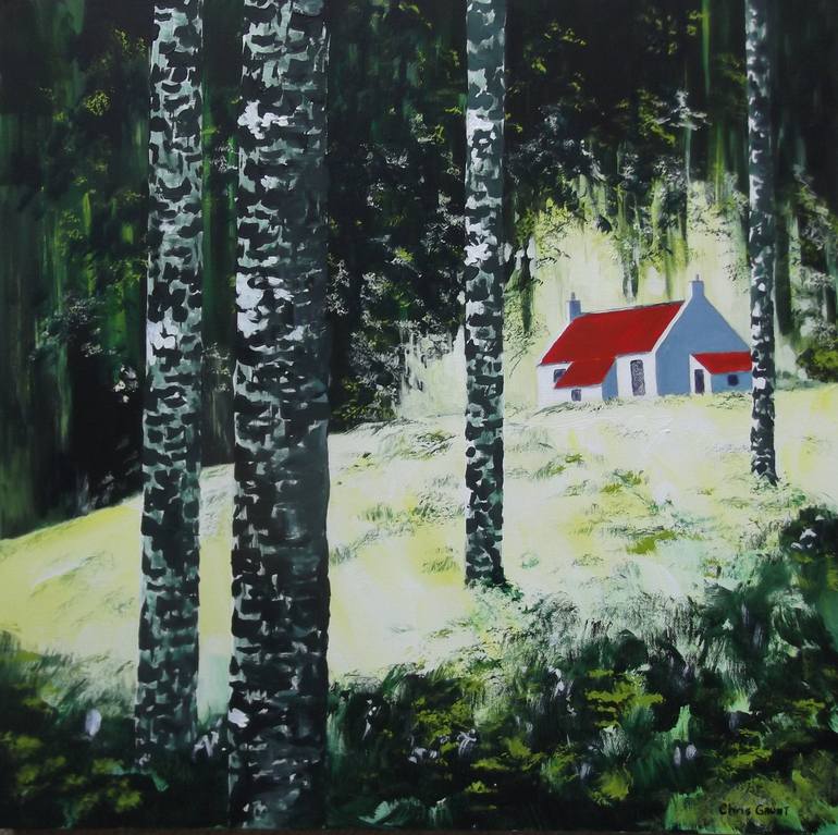 60 x 60cm Acrylic painting on stretched canvas. ready to hang. The fourth of my seasonal paintings of this cottage.