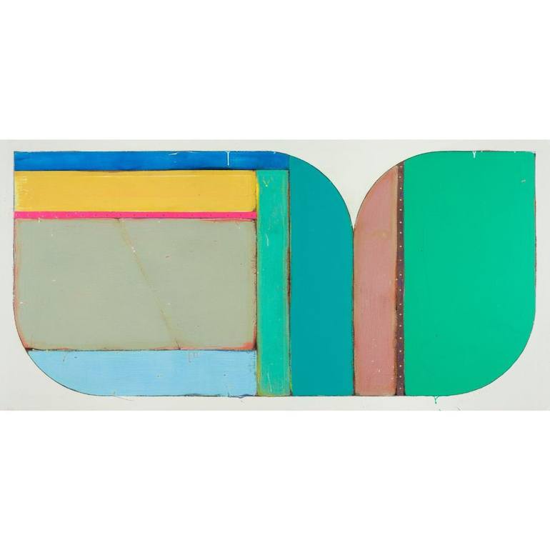 Whale Tail I | 36" x 72" | ready to hang | mixed media on Baltic birch Inspired by Rey's experiences of kayaking in the SF Bay. This work features the elegant stepped forms, sweeping curves and layered shapes of Art Deco, old American cars and the colors of Cuban tropical splendor.
