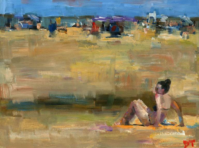 Distance is part of a series depicting beach scenes. I use subdued colors and loose brush strokes, as in most of my paintings, in order to create the mood and feel of an urban setting. Art buyers may see a symbolic reference to prominent 20th century American painters like George Bellows, John Slo...