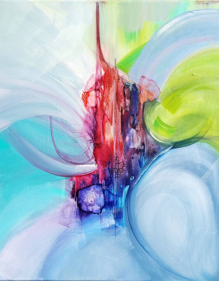 MICHELE MADELEINE GUILLOT French Woman) For me Abstract painting is emotion in colors. forms, energies, arise for a plural look I liked art very early, I started with drawing and painting (freehand reproductions). My motivation was always need to create. I realized it by writing and especially by self-taught painting. I secretly nurtured a vocation of artistic expression that grew in power. I visited galleries and museums in France and abroad, I followed artistic learning (university drawing course: figurative). Visits to the workshops of contemporary painters who kindly welcomed me, were the definitive trigger in years 2000 of a more intense practice. My taste for aesthetics, colors, textures and free expression of deep emotions naturally led me to contemporary on the margins of my professional activities. I took online acrylic painting courses. Here are some of my paintings. I use acrylic for its fluidity. I work mainly with brushes, brushes, sterilizers, sometimes in mixed technology with knives, spatulas, sponges, hands, sprays, pouring. I try to combine spontaneity and pictorial structure. My starting point can be intuition, impression, nsight (an inner vision), colour, line, shape… I like surprises and plastic incidents. I often play with effects of reliefs, movements, drops, dissonances, contrasts, irruptions, unfinished.