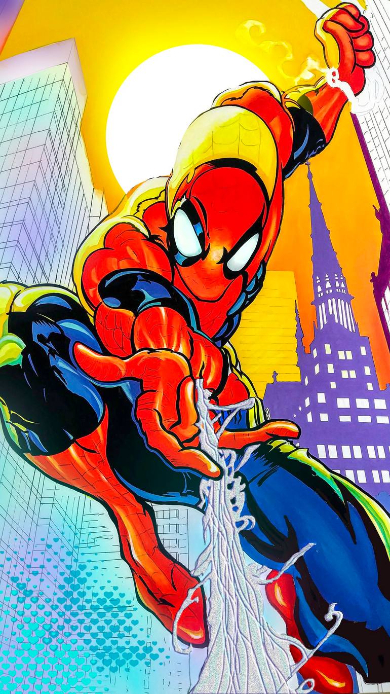 SPIDERMAN | POP ART Original acrylic paint on canvas | 2020 This little insect that roams the big cities and identifies with young people was created by King Midas of comic art. I mean Stan Lee. Everything this genius is inspiring to be drawn and painted. The large format is ideal to highlight ...