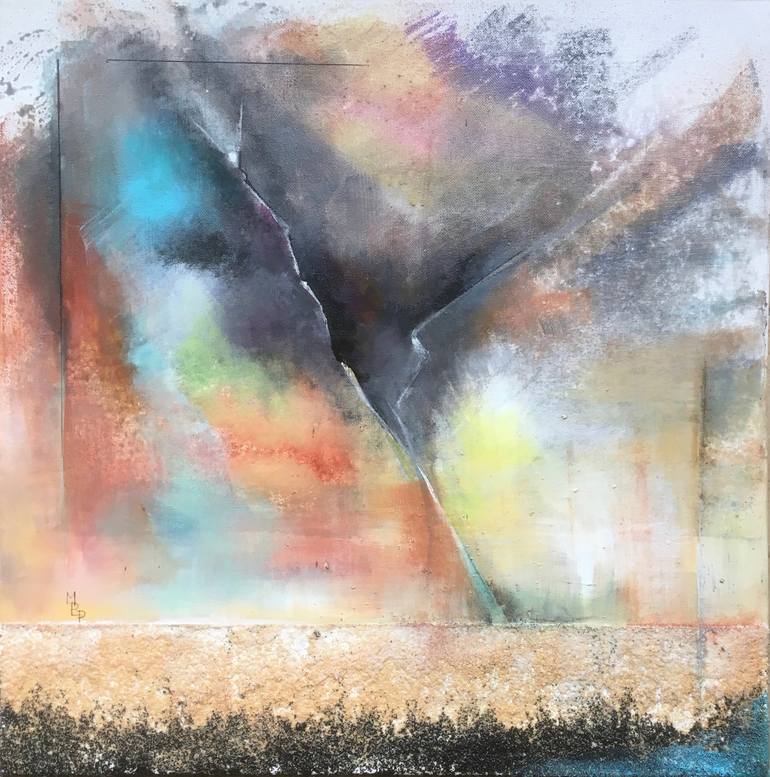 This painting was done after you happened to witness some lightning on the beach. This is done on a wood board with different media, sand, acrylic, ink, pastel... This painting is framed with a floater frame