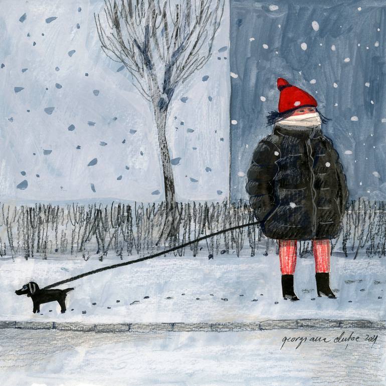 This illustration was inspired by an image I saw outside my window. It was a Sunday morning, the streets were empty, it was extremely cold, and the snow was falling incredibly beautiful from the sky. *signed and dated in the right down corner. ** the illustration will ship unframed.