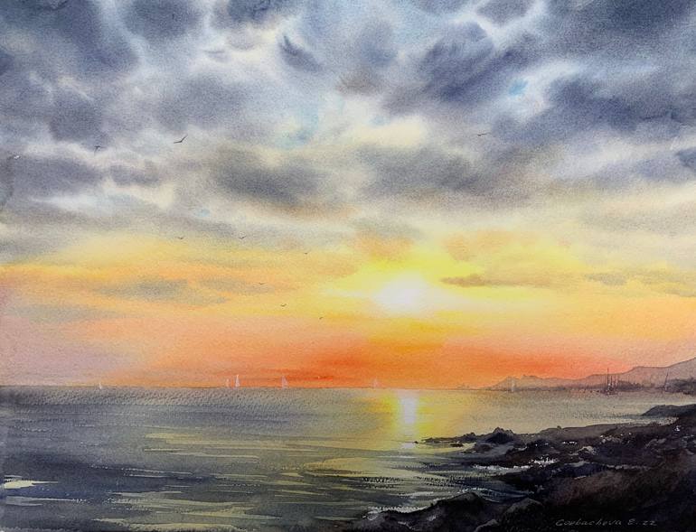 Original watercolor painting Medium: Watercolour on Paper Saunders Waterford 300g One of a kind artwork Size: 31 x 41 cm / 12 x 16 in Signed on the front Subject: seascape 2022 Certificate of Authenticity is included Unframed