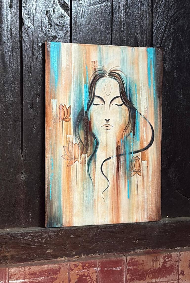 I explore the serene essence of Goddess Parvati a symbol of compassion, strength, and divine feminine energy. The ethereal face, painted with minimalist elegance, emerges from a backdrop of flowing earthy and turquoise tones, representing the delicate balance between grounding and spiritual awakenin...