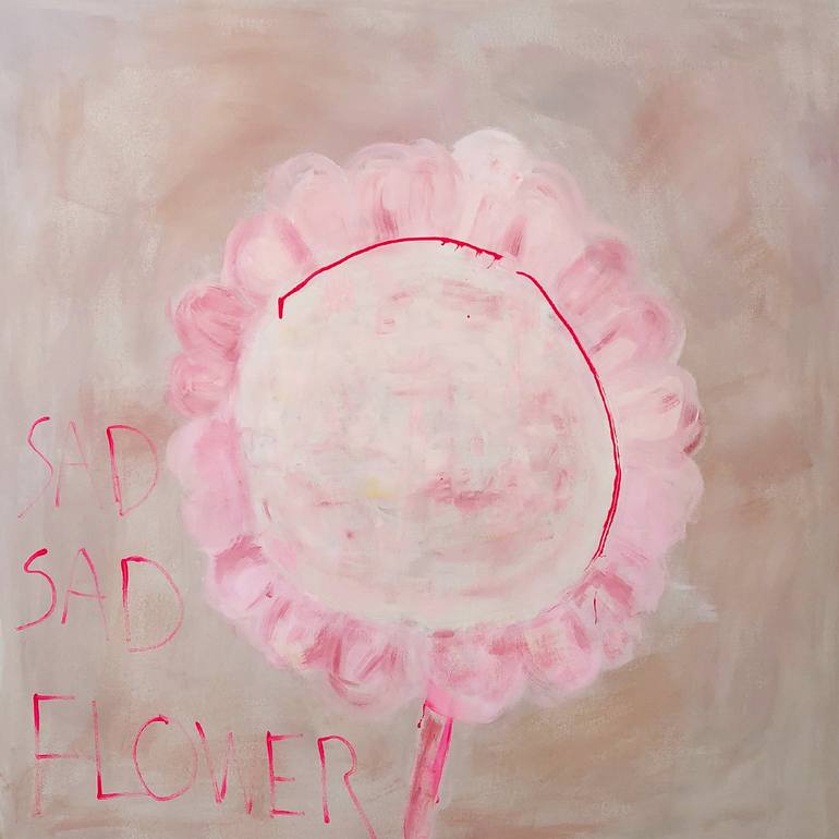 Large painting. Large loosely painted flower and text. Textured emotional painting of feeling Acrylic on canvas 100cm x 100cm x .50".