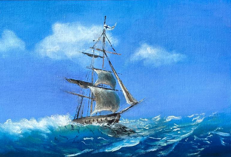I love seascapes and often live by the sea. Sailing large ships are a separate passion and beauty for me. I can make any of my paintings on a large size canvas to order.