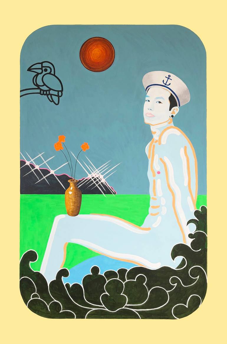 Sailor Boy with Qing Dynasty Vase at Morganite Bay Acrylic on Canvas 150 x 100 cm 2020 By Rick Fraterman