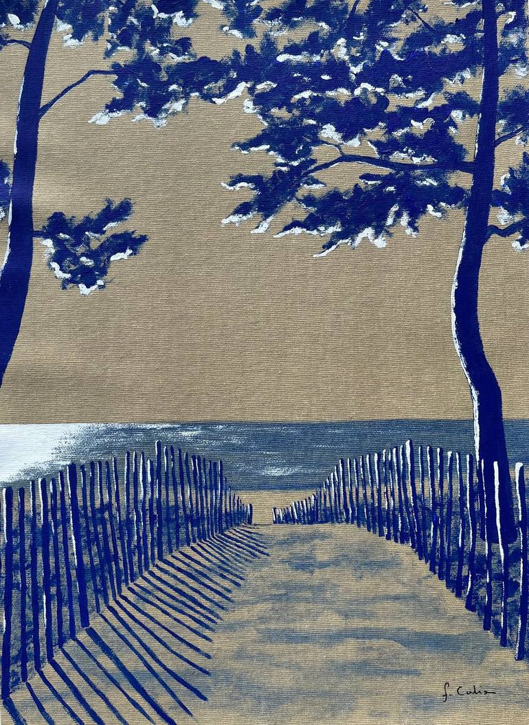Frederic Cadiou is a French painter, born in 1980. He is from the South Finistère in Brittany, where his studio is based. His paintings represent landscapes, highlighted by a bold use of projected shadows and lights, drawing the eye to the horizon. The fluidity of the lines, the clean contours and the measured choice of colours create calm, serene, contemplative atmospheres. His work suggests the interaction between nature and human perception through a reduced palette and dynamic composition. Adherent number at « La Maison des Artistes » : 45943.