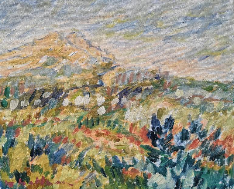 The famous mountain view from a place where Paul Cezanne has been painting.