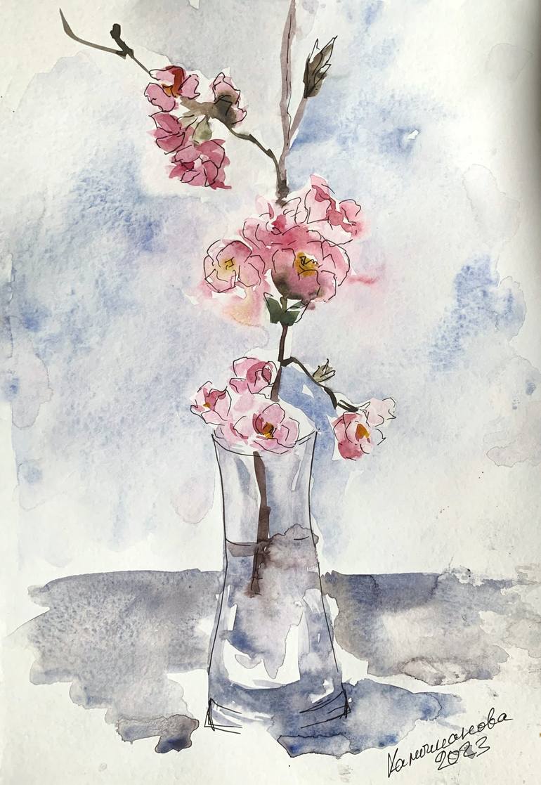 This painting belongs to a series of works with quick sketches of flowers The flowers is painted in classical watercolor technique on professional art paper. The work will look great in a passepartout or in a laconic frame. You’ll need to frame the watercolor under the glass to protect the paint...