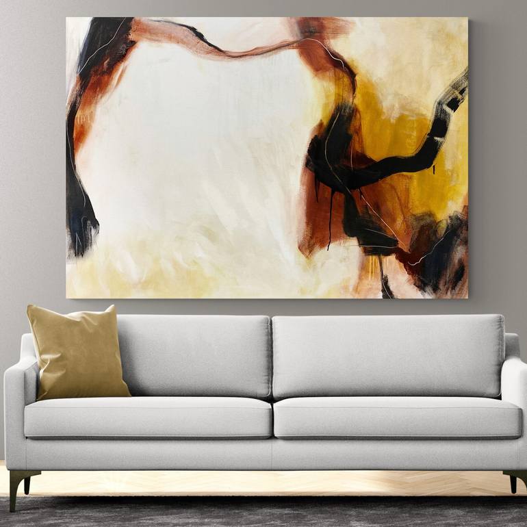 Salt Lake is a beautiful earthy statement painting perfect for any large space. It has a vibrant palette of light warm yellow and red ochres, beige and browns, black and white. It is acrylic on un-stretched canvas and comes rolled for shipping in a tube. It is signed and titled on the back with a...