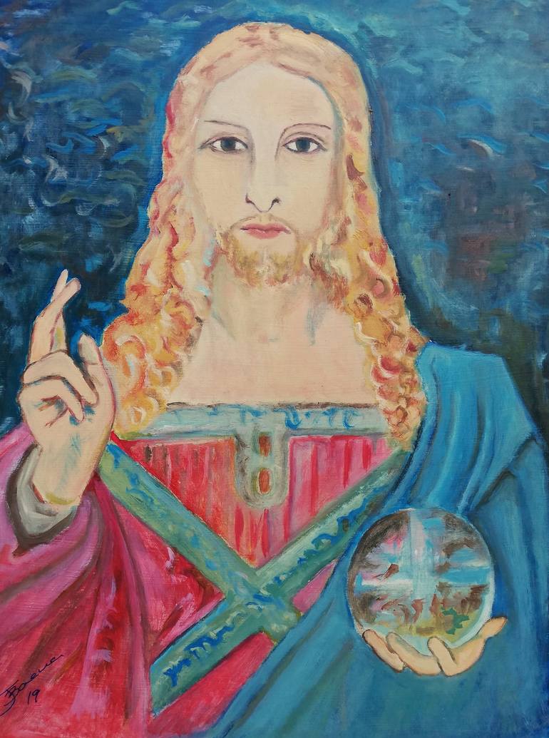 Inspirado en Salvador Mundo interpretación ,sentimiento ,devoción ,espiritualidad.