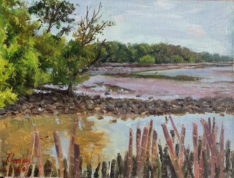 It is a landscape painting that was drawn from real places in each province of Thailand. Samut Sakhon is one of the provinces that has both rivers and is adjacent to the sea. Therefore, brackish water occurs in many areas. It has a lot of natural diversity. Although it is similar to Bangkok.