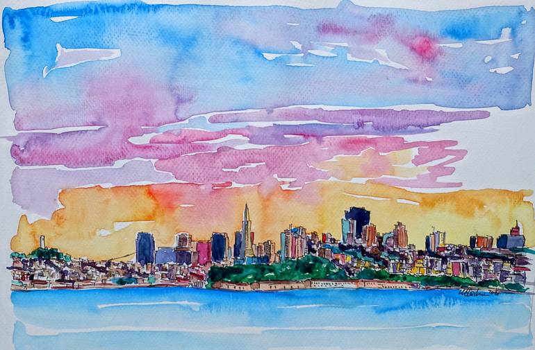 Enjoy our painting of San Francisco Skyline Waterfront Pier Coit Tower And Skyscrapers. It was inspired by a wonderful journey along the California Coast.