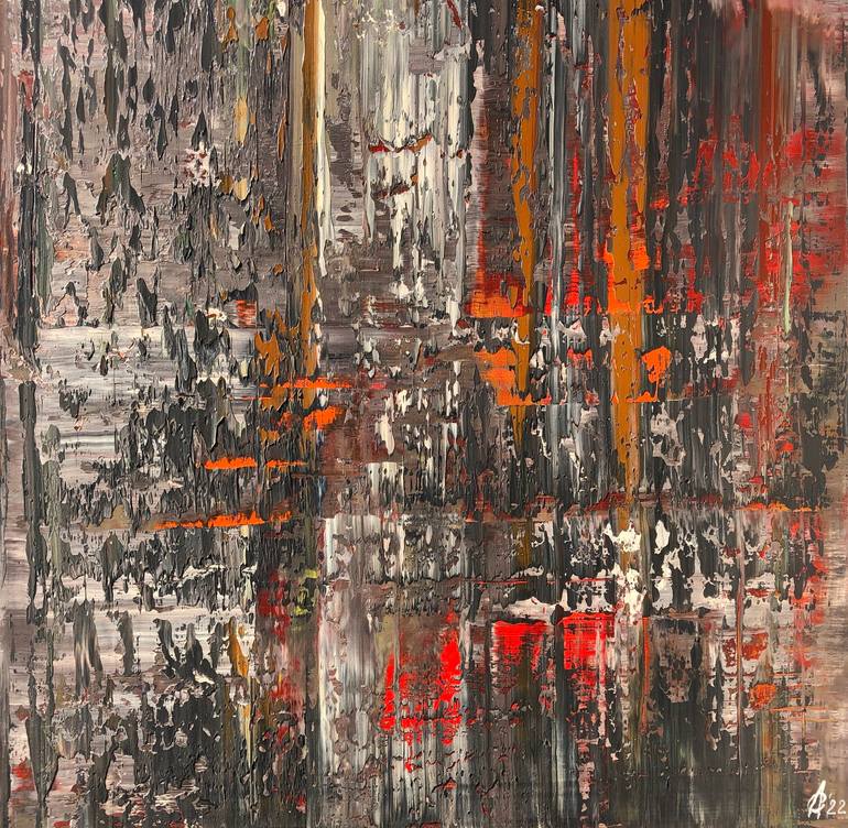Sanctuary. Place of honor. Place of worship. In my creation here, I've layered thick, expressive strokes of oil paint to evoke a storm of emotion. The contrasts between the fiery reds and somber grays reflect life's intense struggles and fleeting tranquility. This painting embodies a chaotic beauty,...