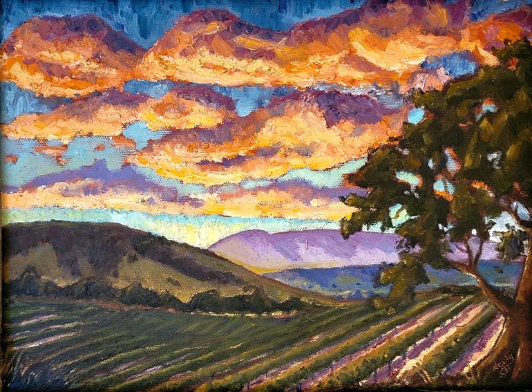 A brilliant sky over vineyards in the Santa Ynez Valley.