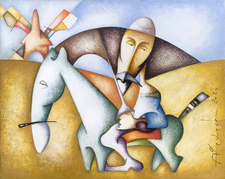OIL/CANVAS Size - 40x50cm READY TO HANG Original painting, 100% hand painted on canvas. Come with signed certificate of authenticity. "Don Quixote" is a 40x50 cm oil painting on canvas that reimagines the iconic literary figure with a modern, abstract twist. The stylized composition, marked by geo...