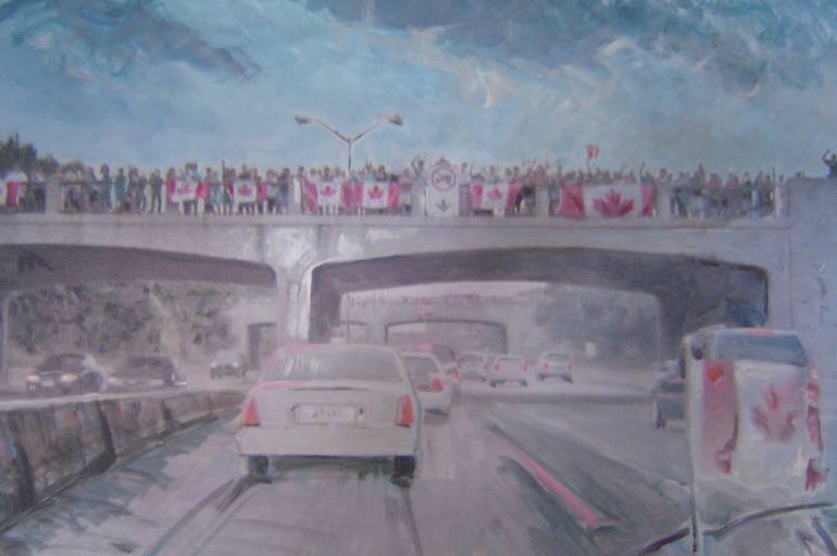 Paul G. Russell, born in Toronto, Canada, is a multi-media artist. His cross-disciplinary practice includes painting, photography, stage, film and the written word. His interests are drawn to the combined subject matter of grounded history, urban growth and time capture from 20th century art. He is also drawn to the imagery in word and picture of the traditional 'Canadien Errant" that suggests such figures as Etienne Brule and Tom Thomson.