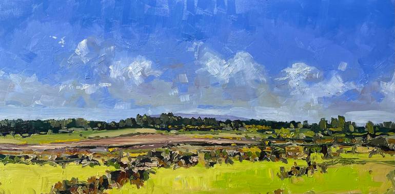 This is a plein air piece, inspired by the peace found on a summers day at harvest time, in North East Scotland. We get our fair share of tough weather in Scotland, so when the sun comes out, we make the most of it, for me - that means painting. I particularly loved pushing the cobalt blue into the ...