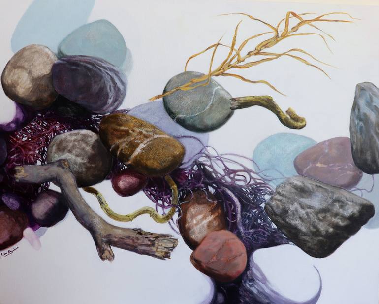 I find a lot of inspiration for painting by going out for long walks in the countryside or along the beach, and stopping to pick up and examine things that catch my eye. (Some of these end up in my studio - and later, replicated in paint on a canvas.) I'm fascinated by the endless shapes, textures a...