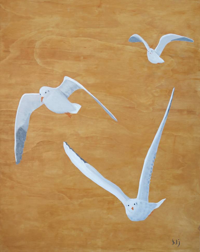 Sea Birds In Flight is a large painting of seagulls on a plywood panel which is backed with a timber support frame made with professional quality joinery. Only the best artist acrylic paints are used. The board is first sealed front and back and the painting is finished with layers of protective po...