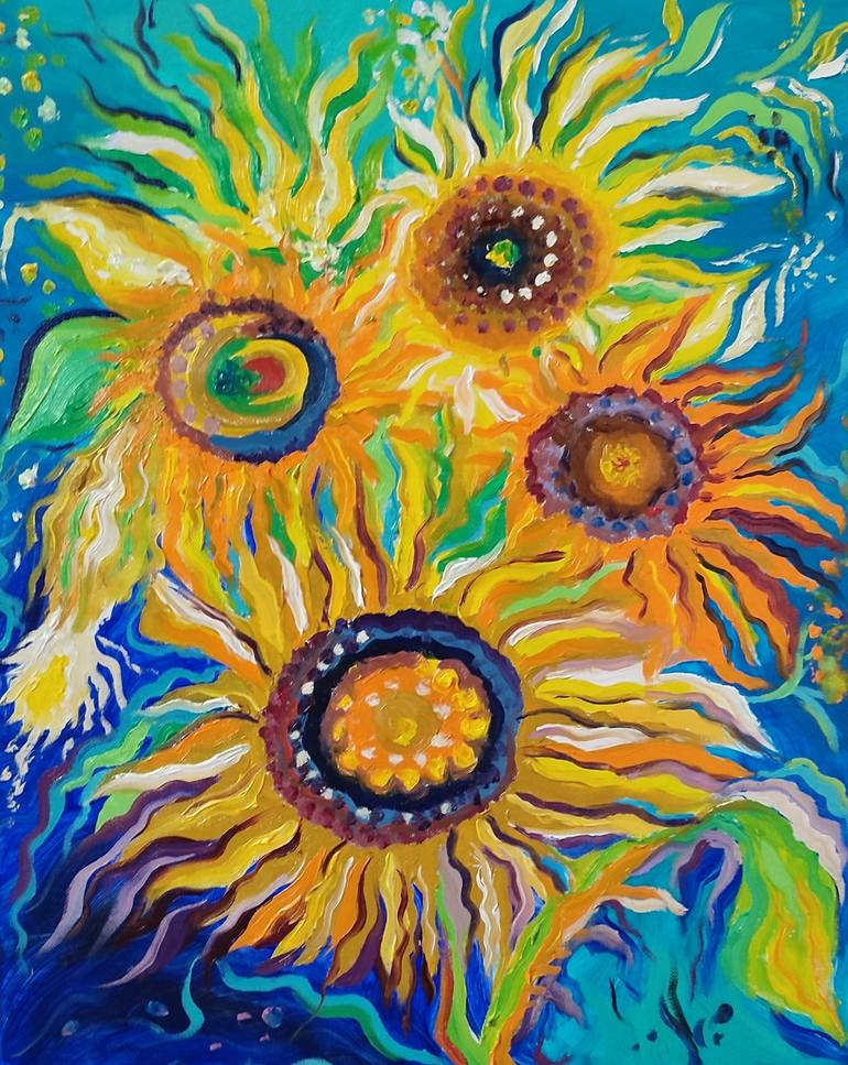 Sea flowers indifferent shapes surviving, thriving and re-birthing under the sea, as their own source of lights and air and the cycle of life. Vibrant yet twisted colours indicate the external chaotic space, yet finding that balance of the centre, stillness and aliveness within. All is reflected on ...