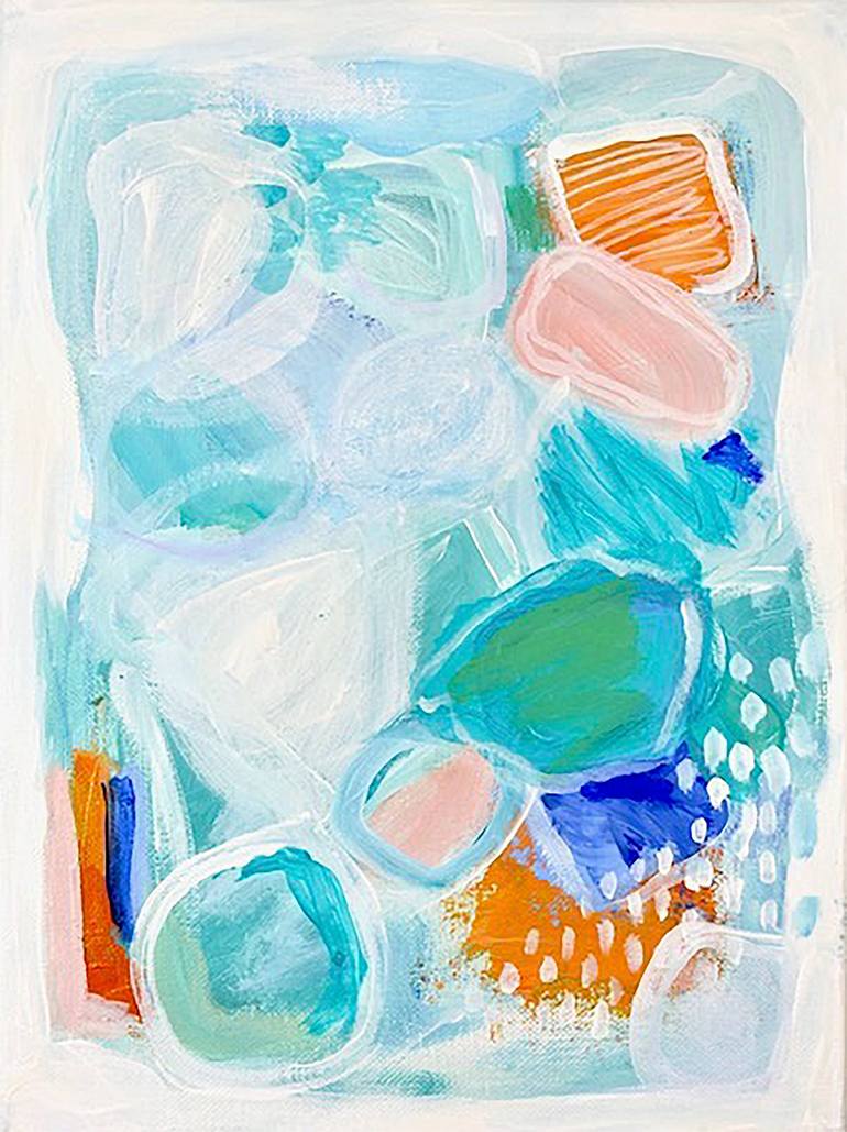 The Sea Glass series was inspired by my collection of sea glass and shells, gathered from various trips and beaches around the world. It sits in a glass bowl by my window and I love to watch how the colors change with the light. These abstract paintings are inspired by the different shapes, colors ...