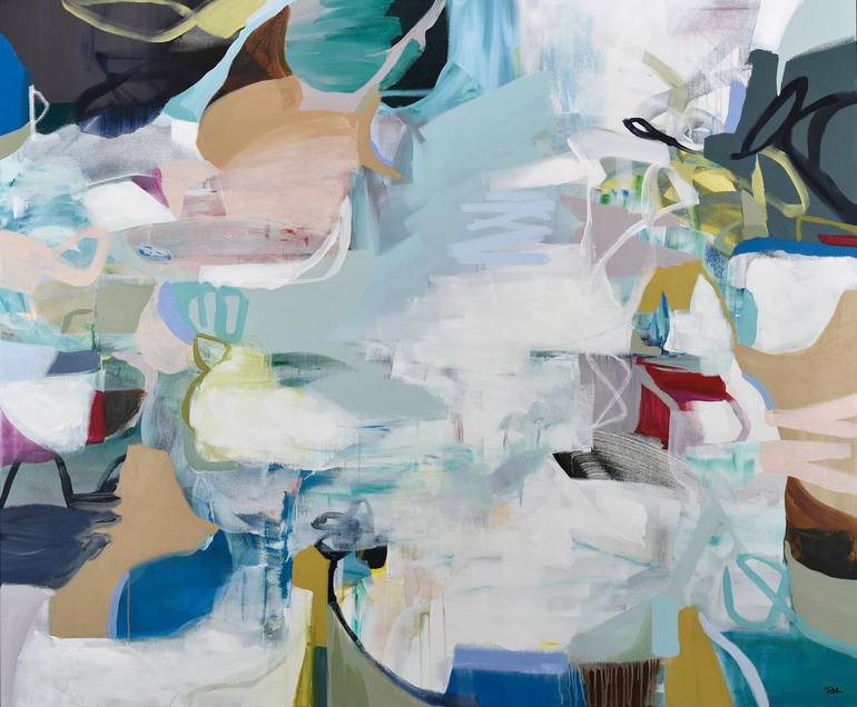 ABOUT THE WORK: “Sea Glass” by Cat Tesla is part of Tesla’s Feeling Good Series. Gestural marks, line, shape, color, this series evokes joy & free expression. “As a glass half-full type of person, my abstract series of paintings expresses my joy and gratitude for each and every day.” During the pan...