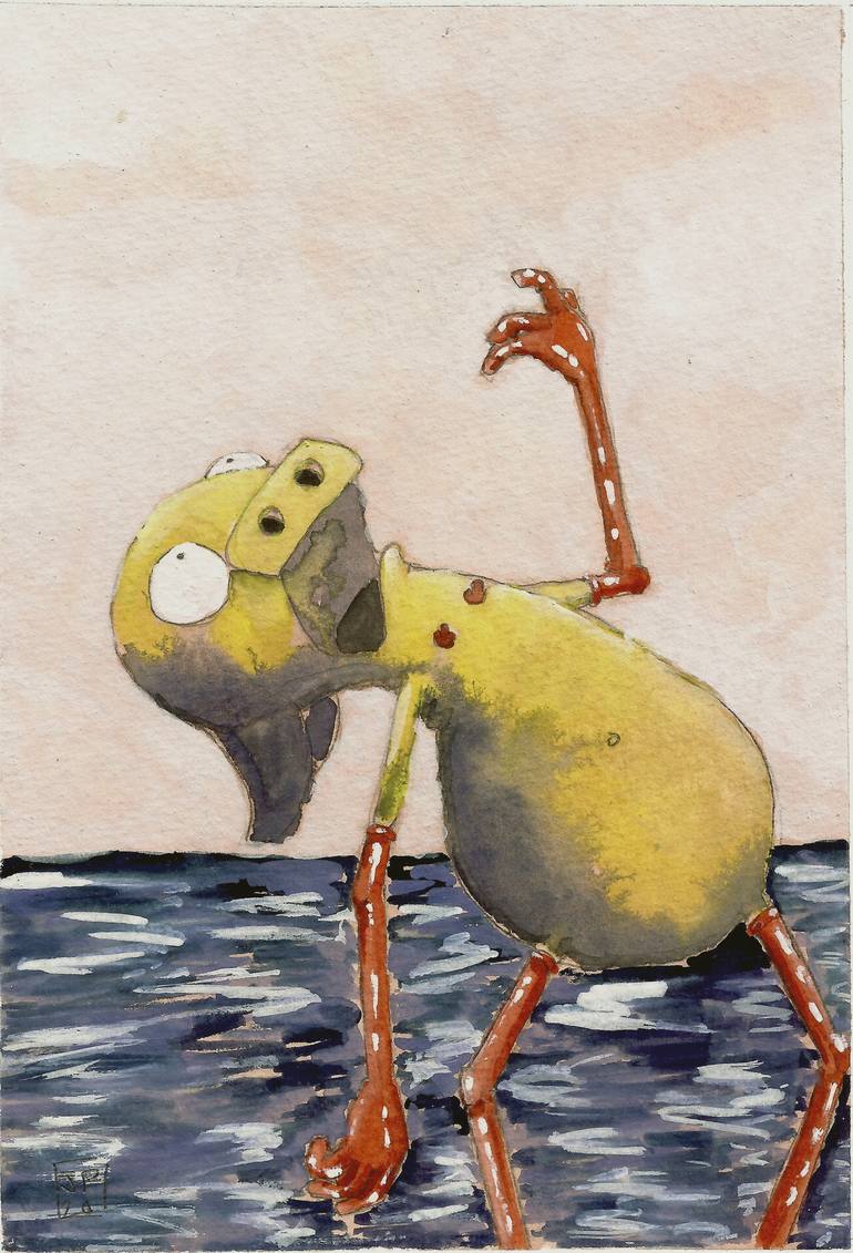 Sea Perv is part of a series of paintings and drawings of figures in and around the sea. My imagery often involves interstitial and liminal spaces used as a source of temporary anonymity for cartoonish figures to play with and try on alternatives to traditional gender norms. My work is inspired gre...