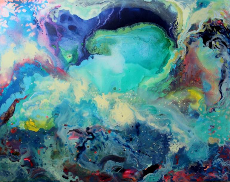 This piece is about the lures of the sea, inhaling salty air, listening to the beat of the ocean, becoming one with celestial beat, power of morning meditation, and peace of ultimate relaxation. Many, many translucent layers went into this artwork, creating a powerful movement of the wave for the st...