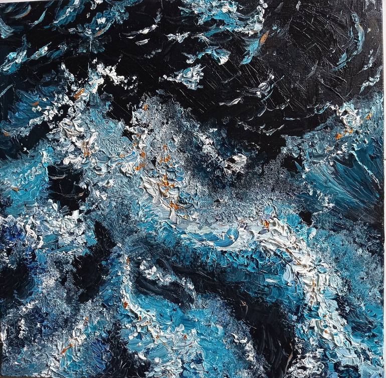 You can see an abstract painting but I can see a seascape too with,but it's not what you look at that matters, it's what YOU see. Packed between two layers of wood to protect the painting during transport. weight total is 3 kg, painting is 0.3 kg. ready to hang, signed on the back