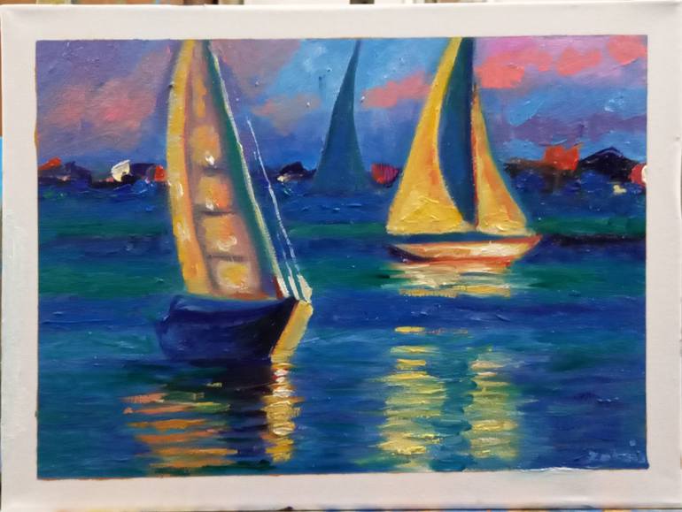 Sea with boats Painting