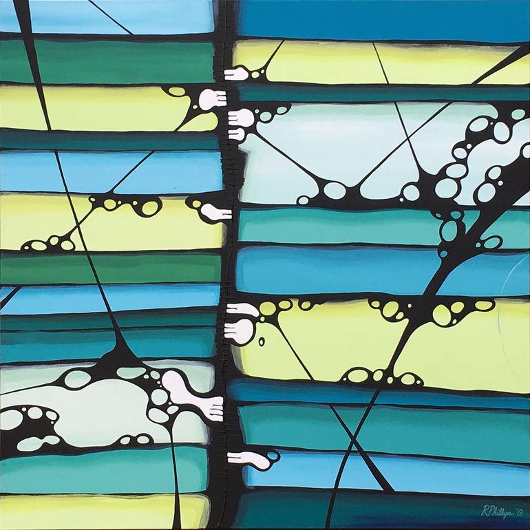 Ocean colors always inspire my paintings of this subject. I wanted to bring together a layered, organic look with shadows and light for depth. There is a spine of paint down the middle that ties in the organic bubbles - this reminds me of creatures in the sea.